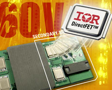如果將IRF6648用于48V輸入、12V輸出的240W隔離式轉(zhuǎn)換器的次級,功率密度可由每平方英寸72W增加15%。這完全歸功于IR DirectFETMOSFET 封裝技術具有的良好散熱設計和雙面冷卻能力。